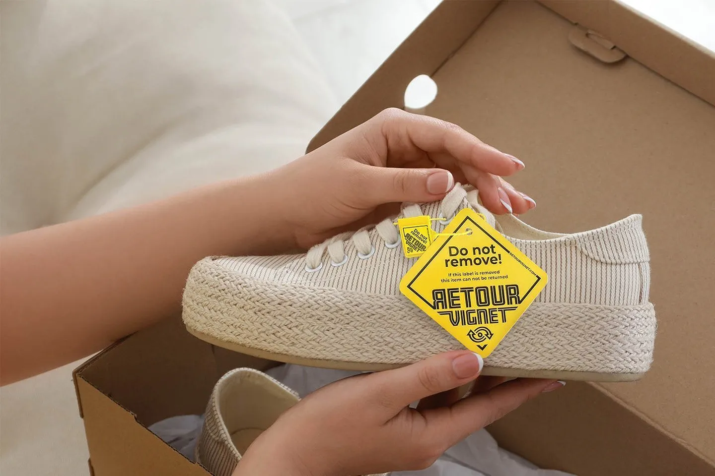 Bij elk item dat voorzien is van een Retourvignet-sticker of Retourvignet-hanglabel met verzegelaar hoort een folder. De folder maakt de koper bewust van zijn retourgedrag. Het Retourvignet en de folder dragen samen direct en indirect bij aan het terugdringen van retourmisbruik.