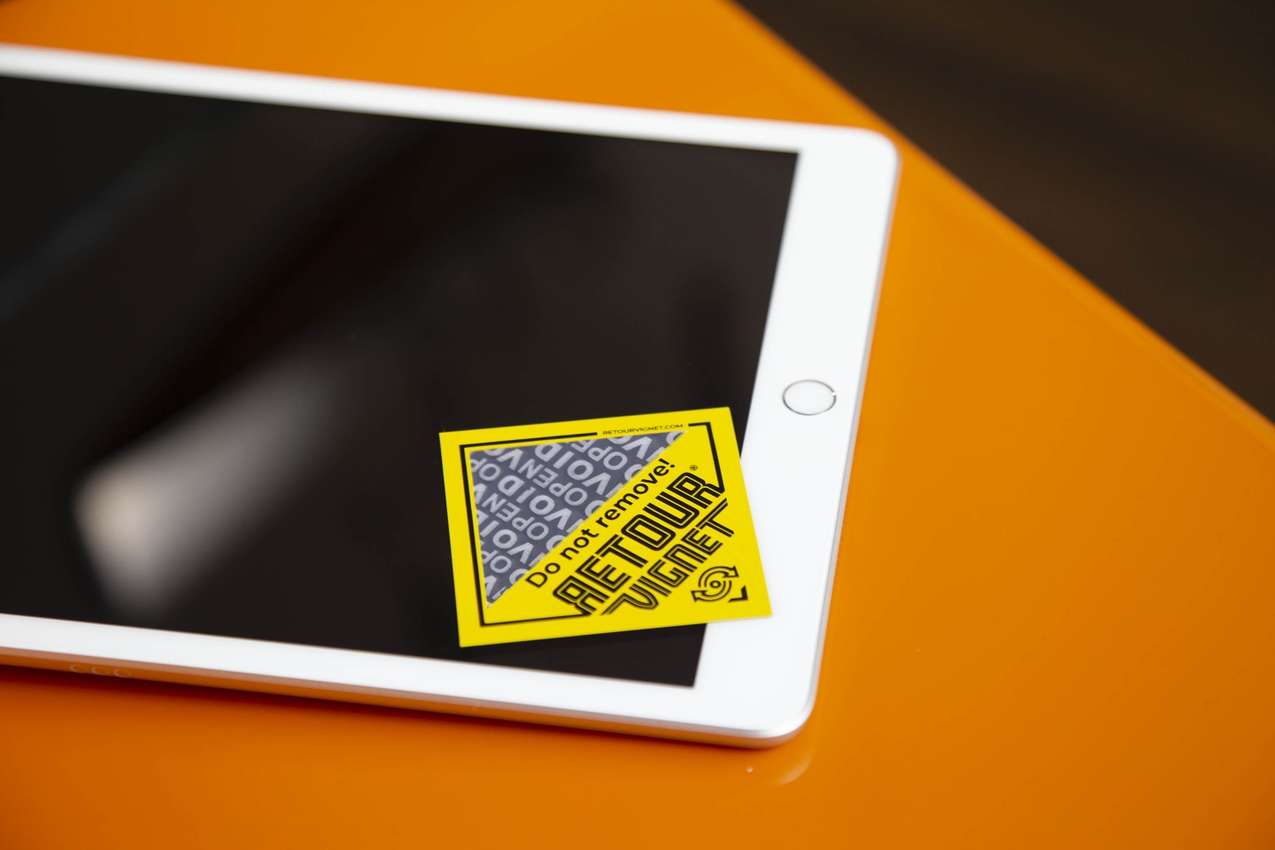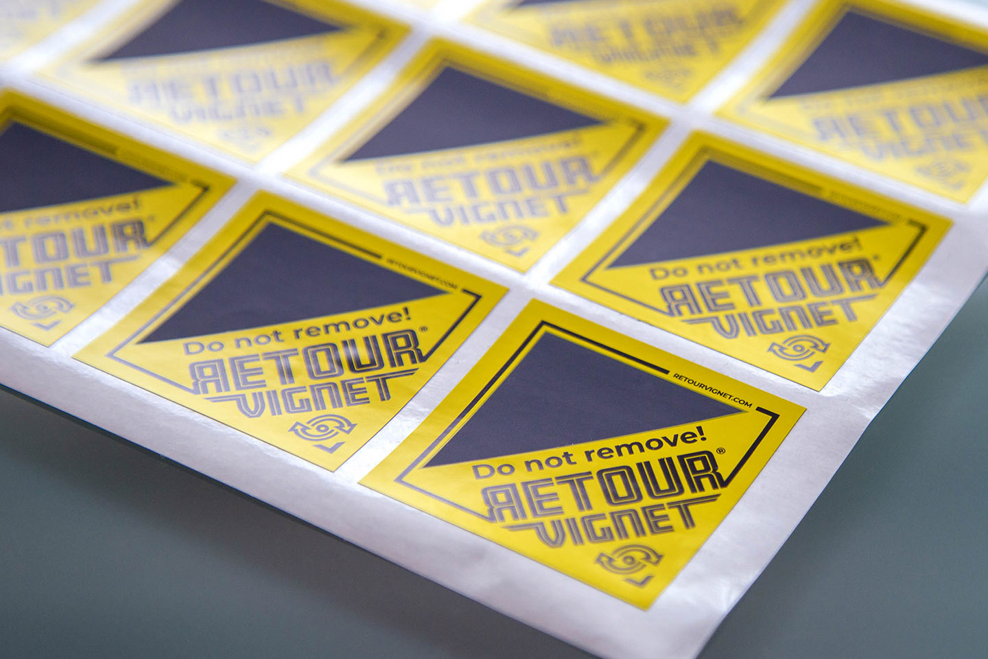 Er zijn stickers in vier verschillende formaten voor de diverse toepassingen. De stickers worden geleverd op vellen van A4-formaat. Bij een item voorzien van een Retourvignet-sticker dient een folder te worden bijgesloten om de koper bewust te maken van zijn handelen en het misbruik van oneigenlijk gebruik tegen te gaan.