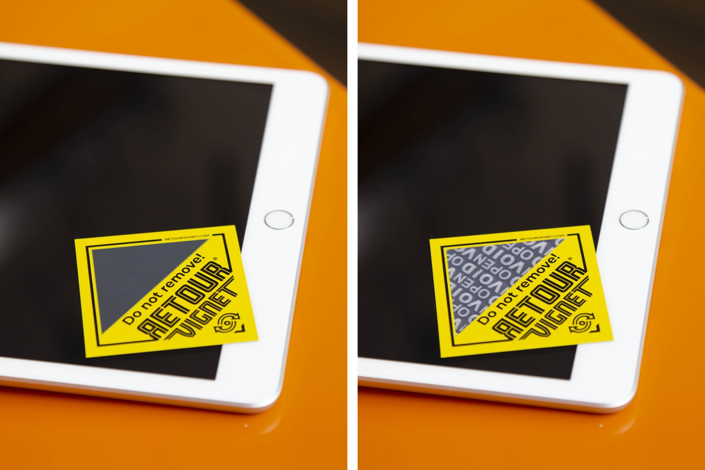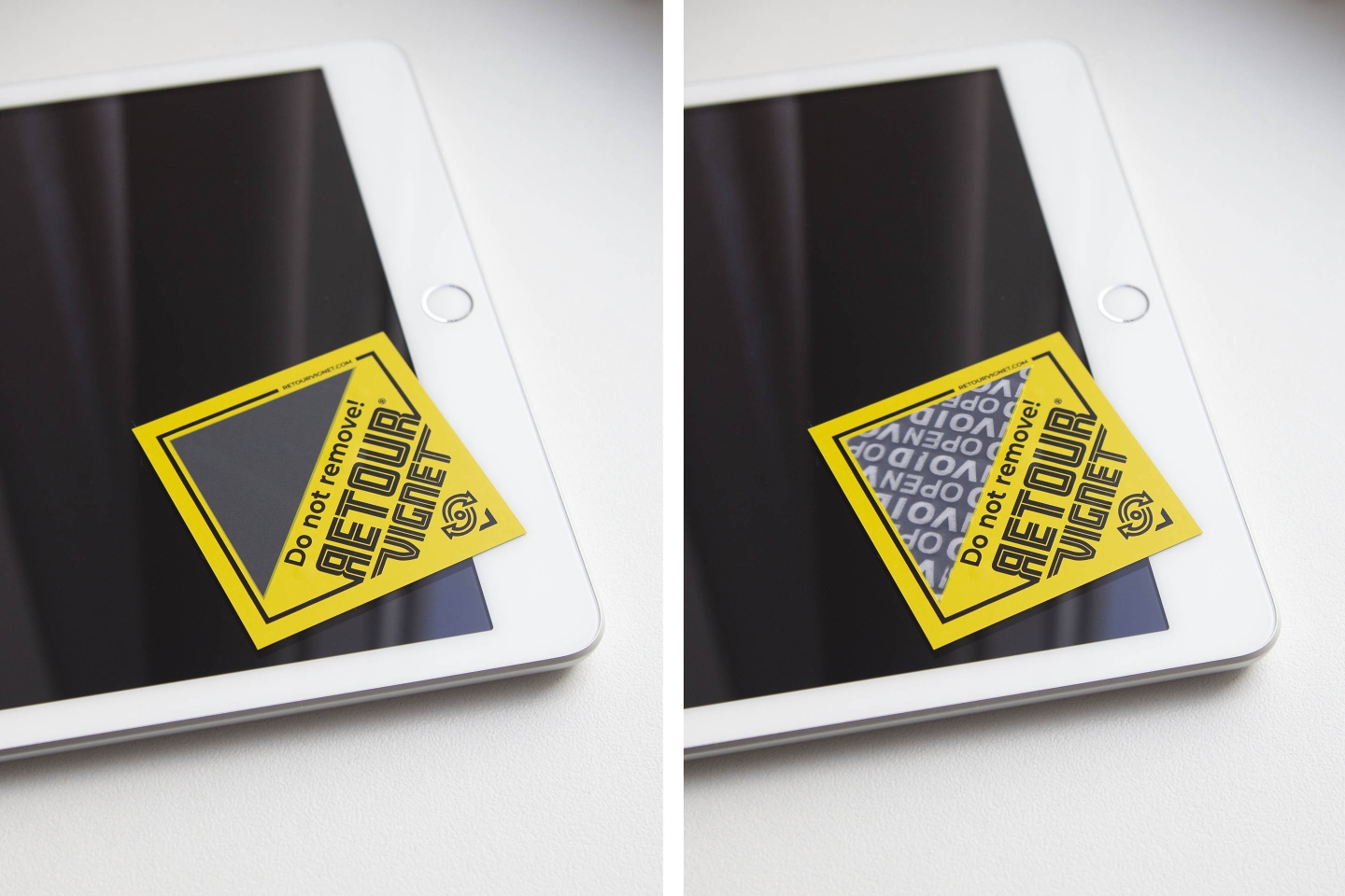 De zelfklevende VOID-stickers worden uitsluitend geplakt op een vaste en gladde ondergrond, anders werkt het VOID effect niet. Bij het verwijderen van de sticker verschijnt de tekst VOID in de lijmlaag van de sticker. De sticker kan niet meer in de orginele staat teruggeplakt worden. Een verwijderde sticker laat geen lijm of residu op het voorwerp achter.