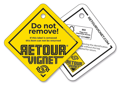 Die ontwikkelfase leidde tot het Retourvignet dat veel overeenkomsten heeft met het Autobahnvignet voor op de auto als je naar Oostenrijk of Zwitserland rijdt. Plak het Retourvignet op het zichtscherm van een skihelm en er kan niet mee geskied worden. Ook een vignet op het voorste deel van een boormachine maakt hem onbruikbaar tot de sticker eraf wordt gehaald. Dankzij een gepatenteerde lijmlaag beschadigt de sticker het product niet, maar eenmaal losgetrokken kan het Retourvignet niet teruggeplakt worden. Voor schoenen en bepaalde kleding